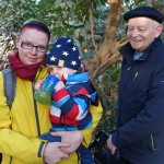 Am Ostersamstag am Nachmittag waren Mama, Papa und Benni zusammen mit Oma Ute, Opa Roland und Uropa Fritz im Zoo – und das bei allerbesten Frühlingswetter. Die Idee hatten auch noch einige andere, so dass es sehr voll war. Bei den bisherigen Zoobesuchen interessierte sich Benni überhaupt nicht für die Tiere. Dieses Mal war es jedoch völlig anders. Schon bei den kleinen Erdmännchen staunte Benni Bauklötze und als es zu den großen Elefanten ging, bekam er seinen Mund dann gar nicht mehr zu 🙂 Er hüpfte in seinem Kinderwagen auf und ab und zeigte überall hin, was er gerade zu sehen bekam. Zwischendurch machten die Erwachsenen noch einen kleinen Zwischenstopp im Cafe, wo Benni genüsslich Mamis Milchschaum und seinen Muffin verputzte. Dann ging es weiter zum Streichelgehege, den Affen und den Nashörnern. Aber das absolute Highlight war der Ameisenbär. Der dackelte im Außengehege so herum, kam plötzlich zum Gitter und steckte seine Nase seinen Rüssel doch glatt hindurch und schnupperte an Bennis Kinderwagen. Benni kam gar nicht mehr aus dem „dadada“ heraus und war völlig fasziniert. Nachdem alle Tiere einmal besichtigt wurden, ging es dann auch wieder nach Hause. Auf dem Weg dorthin schlief Benni natürlich sofort im Auto ein – völlig platt von den ganzen Eindrücken 🙂