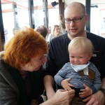 Am letzten Samstag wurde der 90. Geburtstag von Bennis Uropa Fritz gefeiert. Zur Feier des Tages ging es zum Brunchen in den Stadtpark. Benni war dabei voll in seinem Element – es gab Essen satt 🙂 Er staunte nicht schlecht und aß soviel er nur essen konnte. Zwischendurch wurde mit Omi, Uropi, Onkel und Tante gespielt und geschäkert. Irgendwann wurde es ihm dann in seinem Hochstuhl doch zu langweilig und er machte sich auf krabbelnd das Buffet zu erkunden. Die ganzen Leute und die doch hohe permanente Lautstärke machten Benni dann doch zu schaffen, sodass es frisch gewickelt und mit vollem Magen auf ging Richtung Urlaub 🙂