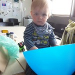 Die Nacht war alles andere als erholsam gewesen. Benni machten seine Backenzähnchen immer noch zu schaffen und so weinte er die halbe Nacht. Dementsprechend müde waren alle am nächsten Morgen. Nach ausgiebigem Toben und einem leckeren Frühstück ging es auf zur alten Arbeitsstätte von Mama und Papa. Auf dem Weg dorthin wurde das halbe Auto noch schnell mit diversen Leckereien vom Bahlsen-Shop beladen. Im INI angekommen ging es auf zum großen Hallo-Sagen der alten Kollegen. Es waren leider nicht so viele von ihnen da, aber das tat der Wiedersehensfeude keinen Abbruch. Besonders im OP freuten sich alle riesig über den Besuch und staunten nicht schlecht, wie groß doch der Benni geworden ist. Benni rockte den Laden – grinste und spielte in einer Tour. Dem Mittagshunger geschuldet ging es dann schnell in die Cafeteria, wo er genüsslich seine Portion Lasagne verspeiste. Die Mutti ging mit ihrem Spatz danach eine große Runde ums Klinikum und Benni schlummerte dann auch endlich. Wieder von seinen Zahnschmerzen geplagt wachte er kurze Zeit später schon wieder auf und somit brachen Mama und Papa dann auf zu ihrer Unterkunft. Dort bekam er ein wenig Schmerzsaft und eine Verschnaufpause, ehe es dann weiter ging zu Besuch von weiteren Freunden in den Garten. Auf dem Weg dorthin schlummerte Benni natürlich wieder und war im Garten angekommen ausgeruht und bester Laune. Dort spielte er ganz lieb vor allem mit seinen Freund Oskar (4 Jahre). Mama und Papa wurden gleich noch zum Abendbrot eingeladen, was nicht nur Benni sehr freute. Er aß wie gewohnt viel und ausdauernd, ehe es am Abend wieder zurück ins Domizil ging. Wieder schlummerte Benni ein und wurde ganz fix nach der Ankunft ins Bettchen verfrachtet, wo er dann auch sofort einschlief.