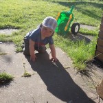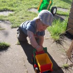 Bei herrlichstem Wetter packten Mama und Papa den gefühlten halben Hausstand ins Auto ein und am Vormittag ging es dann los Richtung Hannover. Benni war trotz der sehr sehr anstrengenden Nacht (doofe Backenzähnchen) sehr gut gelaunt und spielte mit dem Papa auf dem Rücksitz ganz lieb. Gute Freunde der Familie waren so lieb und nahmen die kleine Familie für die gesamte Zeit in ihrem Haus auf. Dort angekommen erkundete Benni gleich einmal das ganze Haus, während die Mama sich häuslich einrichtete und für Benni alles vorbereitete. Bis zum Mittagessen spielte Benni ganz lieb mit Sophie, der Tochter von Mama und Papas Freunden und ab da war Benni nur noch „das Baby“ 😉 Nach einer Portion Nudelauflauf ging es dann für den völlig übermüdeten Benni ins Bettchen. Dort wollte er aber auch nicht wirklich lange schlafen, sodass nach nicht einmal einer Stunde schon wieder nach der Mama gerufen wurde *grrr* Bester Laune und bei herrlichsten Sonnenschein ging es dann für den Rest des Tagen raus in den Garten. Dort konnte Benni allerhand erkunden und entdecken. So wurde ausgiebig Ball gespielt, auf dem Croco gewippt, mit seinem Lauflernrad umher gedüst und mit seinen Autos gespielt. Am Nachmittag machten alle zusammen dann noch einen kleinen Ausflug zur Eisdiele, wo Benni zum Erstaunen aller kein Eis essen wollte. Wieder zu Hause angekommen wurde dann gleich der Grill startklar gemacht. Natürlich aß Benni seine Wurst mit riesigem Appetit. Nach dem Abendessen war dann auch der stärkste Krieger k.o. und es ging unter lautem Geschrei direkt Richtung Bettchen, wo Benni auch sogleich ins Land der Träume verschwand.
