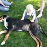 Nach einer doch sehr angenehmen und relativ ruhigen Nacht war Benni schon um halb 6 wieder bester Laune und wartete schon ungeduldig in seinem Bettchen, ehe es wie gewohnt zum Toben ins Ehebett ging. Er stand völlig unter Strom und wusste kaum wohin mit seiner ganzen Energie. Die Mama packte dann schon einmal alle Sachen zusammen und baute sein Reisebettchen ab. Nach einem ausgiebigen Frühstück mit allen zusammen wurde das Auto beladen und den Freunden auf Wiedersehen gesagt. Am Vormittag ging es dann zu Nadine und Curly. Auf das Treffen freute sich die Mutti schon ganz besonders. Natürlich schlummerte Benni auf dem Weg dorthin noch eine Runde, ehe ihn seine Prinzessin wach machte. Bei tollem Wetter ging es dann auf den nahe gelegenen Spielplatz. Hier tobten sich die Mäuse herrlich aus – buddelten im Sand, schaukelten, und Benni fuhr natürlich mit seinem Lauflernrad quer Feld ein. Zum Mittagessen ging es dann kurz noch zu ihnen nach Hause, wo die Fressraupe noch schnell gefüttert wurde. Seinen wohl verdienten Mittagsschlaf machte Benni dann auf dem Weg zum letzten Besuch nach Peine – das lag ja prima auf dem Rückweg nach Magdeburg. Die ehemaligen Kollegen freuten sich riesig auf den Kurzbesuch und hießen sie herzlich willkommen. Sie hatten ein riesiges Haus mit Garten, wo sie es sich alle dann auch total gemütlich machten. Besonders angetan hatte es ihm die Gordi, die Hündin der Familie. Er war völlig begeistert von ihr und wich ihr den Rest des Tages nicht mehr von der Seite. Mama und Papa quatschten über alte Zeiten und die Zeit verging wie im Fluge. Zum Abschluss wurde dann auch noch ganz lecker gegrillt und Benni mampfte sein Würstchen. Am frühen Abend war Benni wie nicht anders zu erwarten völlig fertig und schlief auf dem Rückweg nach Hause sofort ein. In Magdeburg angekommen wachte Benni wieder auf, war gut drauf und so durfte er dann auch noch ganz lange auf bleiben. Am späten Abend doch ging es dann ab ins Bettchen – Benni strahlte über beide Backen und schlief ganz lieb ein.