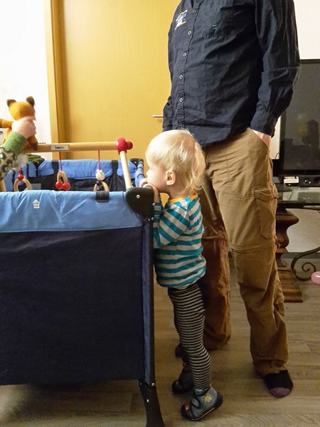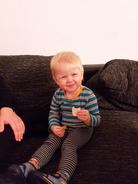 Mama und Papa verbrachten zusammen mit Benni dieses Jahr Sylvester einmal nicht zu Hause. Es ging zu einer guten Freundin aus Hannover, die bei ihrer Schwester hier in Magdeburg feierte. Benni bereitete sich sehr gewissenhaft auf die bevorstehende Party vor und machte bis weit in den Nachmittag hinein seinen Mittagsschlaf. Bester Laune ging es am Abend dann los. Benni spielte sofort mit den anderen Kindern dort (5 und 8 Jahre). Da auch noch eine Katze mit von der Partie war, war alles perfekt. Er tobte völlig ausgelassen . Natürlich verputzte er auch 3 Teller leckere Kürbissuppe mit Würstchen. Schon vom Fenster aus faszinierten Benni die vielen bunten Raketen. Zum späten Abend hin gingen alle dann für eine kurze Knalleinheit vor die Tür. Aber so in direkter Nähe der Böller und Raketen fühlte er sich überhaupt nicht wohl und klammerte sich zitternd an die Mama. Wieder im Warmen wurde Benni dann doch ganz schnell müde und kuschelte ganz lieb bis seine Äuglein zu fielen. Die Mama legte ihn dann ins Schlafzimmer aber er wollte einfach nicht weiter schlafen. Immer wieder wachte er auf, weinte und rief nach Mama und Papa. Der ganze ungewohnte Krach der Sylvesternacht machte ihm doch sehr Angst. So verbrachten sie immer abwechselnd den Rest des Sylvesterabends bei Benni und kuschelten. Nachdem das ganze Knallen etwas weniger geworden war, schnappten sie sich Benni und fuhren wieder nach Hause. Angekommen wurde noch schnell die Windel erneuert und er schlief sofort ein und bis zum nächsten Morgen leider nur bis um 8.