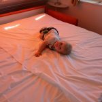 Heute nun ging es endlich los in den Urlaub an die Müritz. Benni kannte schon seit Tagen kein anders Thema mehr als den Urlaub. Nach einer sehr ruhigen Nacht wurden am Vormittag noch die letzten Sachen eingepackt und schon einmal ins Auto verfrachtet, Bei dem Anblick des Kofferraums hätte man glatt denken können, dass Mama, Papa und Benni eine halbe Weltreise machen 😉 Der Benni spielte bis zum Mittag völlig ausgelassen und konnte es kaum erwarten endlich los zu fahren, Zuvor gab es noch schnell lecker Mittagbrot, ehe alle Richtung Müritz aufbrachen. Die Fahrt selber verlief bestens. Benni war sowas von lieb gewesen und schlief fast die komplette Fahrt über. Angekommen, erwartete alle prächtiges Sommerwetter und strahlend blauen Himmel. Benni wusste gar nicht wo er zuerst hinschauen sollte – Schiffe, Wasser oder Spielplatz. Die Mama erledigte sogleich den ganzen Papierkram und dann ging es endlich in das Appartement. Und das übertraf alle Erwartungen. Luxus pur auf 2 Etagen. Direkter Seeblick und 3 Balkone, Whirlpool und Sauna, wobei man für Letzteres nur einmal vor die Tür hätte gehen müssen 😉 Mama und Papa schleppten den halben Hausrat nach oben und die Mama packte alles so schnell sie konnte aus. Der Benni drängelte nämlich schon, dass er unbedingt plantschen gehen wollte. Schnell eingecremt und Sommer tauglich gemacht ging es zum kleinen Sandstrand – direkt vor die Tür 🙂 Dort plantschte er völlig losgelöst und ausgelassen und matschte drauf los. Mama und Papa kühlten sich dann natürlich auch mit den Füßen etwas ab. Am Abend ging es dann wieder zurück ins Appartement. Dort packte Benni seine halbe Spielkiste aus und spielte ausgelassen mit seinen Autos und der Eisenbahn. Die Mama präparierte indes den Balkon für das Abendessen. Mit herrlichstem Blick auf die Müritz langte Benni ordentlich zu. Während Benni noch ein wenig spielen durfte genossen Mama und Papa noch ein wenig den tollen Blick und das tolle Wetter. Am späten Abend durfte Benni dann zum Plantschen in die große Badewanne, wo er ob der Größe fast verschwand 😉 Wie immer beim Zähnchen putzen und Waschen gnatzte er herum aber ließ zum Schluss alles über sich ergehen. Noch schnell dem Papa gute Nacht gesagt kuschelten sich Mama und ihr Spatz in sein großes Bettchen – der Benni bekam nämlich die Klappcouch anstatt des Reisebettchens 🙂 Nach etlichen Büchern und Liedern erzählte Benni noch eine Weile mit seinen Kuscheltieren ehe er ganz lieb ins Traumschlummerland entschwand.