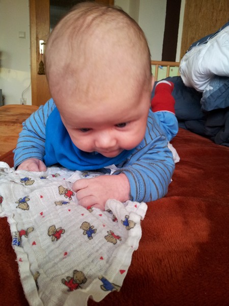 Der Benni legt in seiner Entwicklung weiterhin ein wahnsinniges Tempo hin. Er stemmt schon seit längerem sehr kräftig sein Köpfchen hoch. Seit einigen Tagen nun legt ihn die Mutti immer wieder mal auf den Bauch um das zu trainieren – mit beachtlichem Erfolg. Er hält sein Köpfchen schon fast eine halbe Minute und hebt dabei auch vorbildlich seine Beinchen nach oben , was für seine erst 6 Wochen schon mehr als gut ist. Da staunten auch die Freunde von Mama und Papa gestern nicht schlecht 🙂