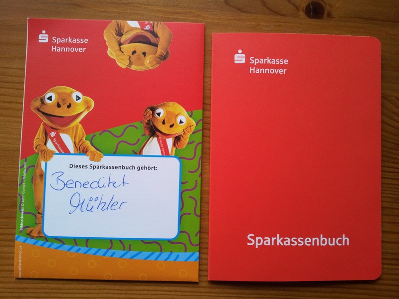 Sparbuch Februar 23, 2015 | Friederike Mühler So, der Benni ist ab heute stolzer Besitzer seines eigenen Sparbuches 🙂 Die Mama und der Papa haben zur Geburt von ihm einen doch sehr beachtlichen Geldsegen erhalten, der nun für den Sonnenschein schön, wenn auch fast ohne Zinsen, angelegt ist 🙂